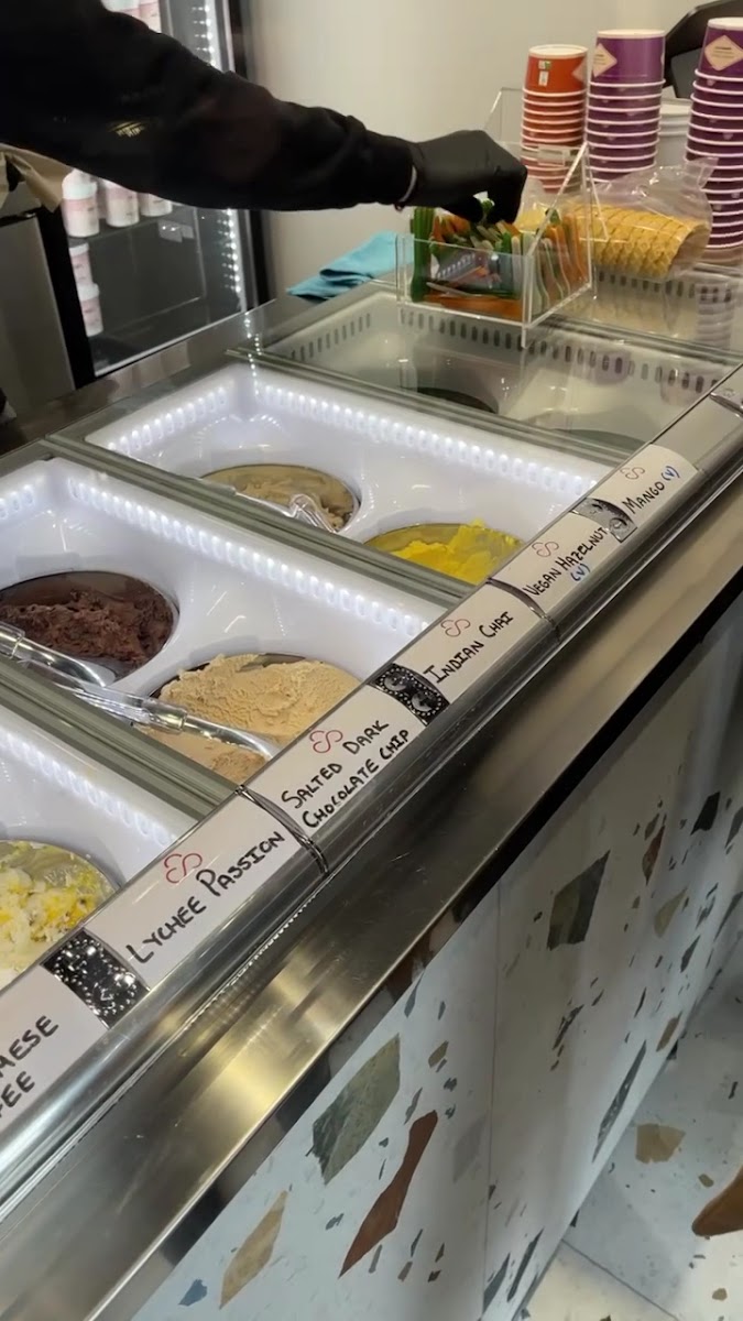 Nani's Gelato is renowned for its unique and expansive menu, featuring a kaleidoscope of flavors that cater to every palate. From the rich and nutty Pistachio to the indulgently creamy Espresso Nutella, every scoop is crafted with precision and passion. The Salted Dark Chocolate Chip and Chocolate Oreo options cater to chocolate lovers, while those seeking a fruity burst can indulge in the luscious Mango Passion Fruit or the refreshing Strawberry Lychee Sorbetto (vegan!). Each concoction is expertly made, ensuring that every mouthful is a celebration of fresh and high-quality ingredients.
